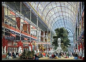 It was not just the glassmaking exhibitors who revelled in the opportunity to show off their wares, but the whole exhibition building was a magnificent tribute to the glassmaker. English glassmakers undoubtedly received their highest recognition by the decision to accept Joseph Paxton's design for the building. Joseph Paxton was the estate manager of the Duke of Devonshire. The truth of the matter was, the design was basically one giant greenhouse constructed of iron and clad in sheet glass. The Birmingham glassmaker, Chance, was commissioned to supply the glass for the construction of the building and it comprised of an estimated 293,655 panes of glass with a total weight of over 400 tons. Before the building was finished it had already been dubbed The Crystal Palace by a writer in the periodical of the period Punch. Imagine the spectacular sight when viewed on either a sunny or rainy day, with so much glass glimmering for all to see.